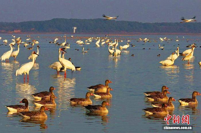 2月22日,江西鄱阳湖国家级天然保护区(qu),大量候鸟栖息于此。(材料图)王小龙 摄