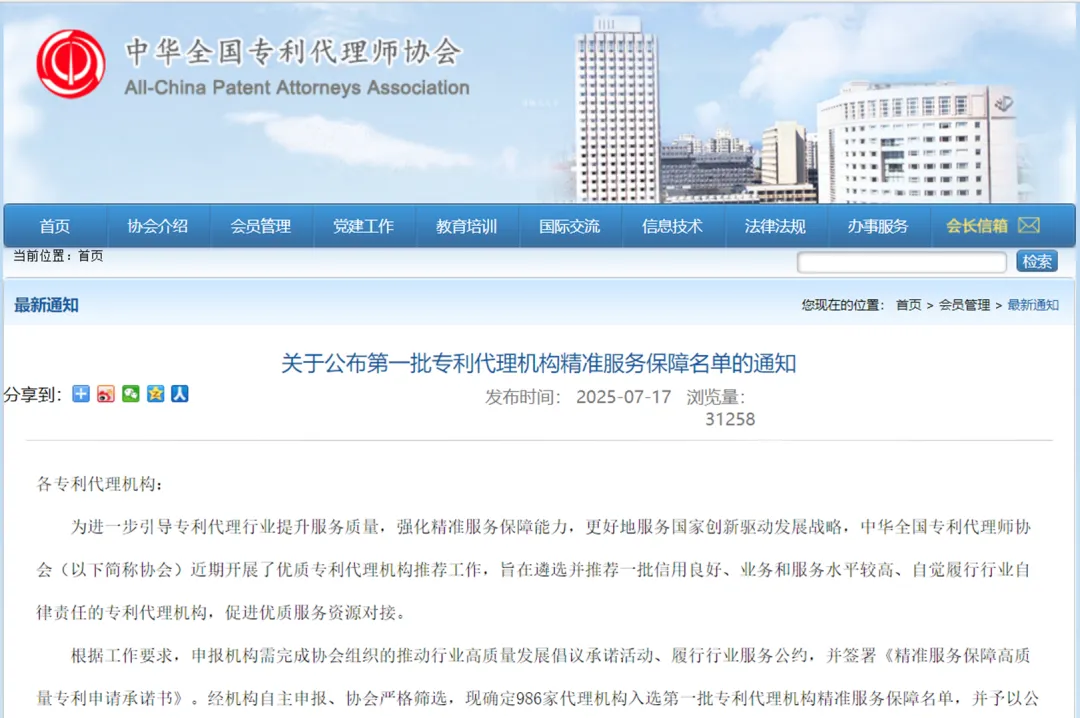 光华所凭借长期以来在专利代理服务中的优异表现,成功入选首批中华全国专利代理师协会公布的专利代理机构精准服务保障名单。
